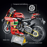 Building Blocks Technical Experts Creator Sets Fast Motorcycles Series MOC - 85004 The Super Ducati V4R Racing Motorcycle Sport Bikes with 1966+ Pieces Bricks 1:5 Static Model Speed Educational Fun DIY Toys for Kids and Birthday and Christmas Gifts.
